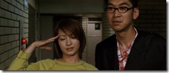 Back in Tokyo, Yuri tries to get her boss (Shiro Sano) at BS Digital Q to okay a serious documentary on what is happening at Mt. Myoko. He’s utterly disinterested because “our job is to make cheap fictional shows.” When the would be Lois Lane presses, he continues that the owners want it that way. Distressed at finding a gray hair, he quickly departs leaving the frustrated young woman behind. One has to love the snark aimed at reality TV especially with the quite aptly named network.